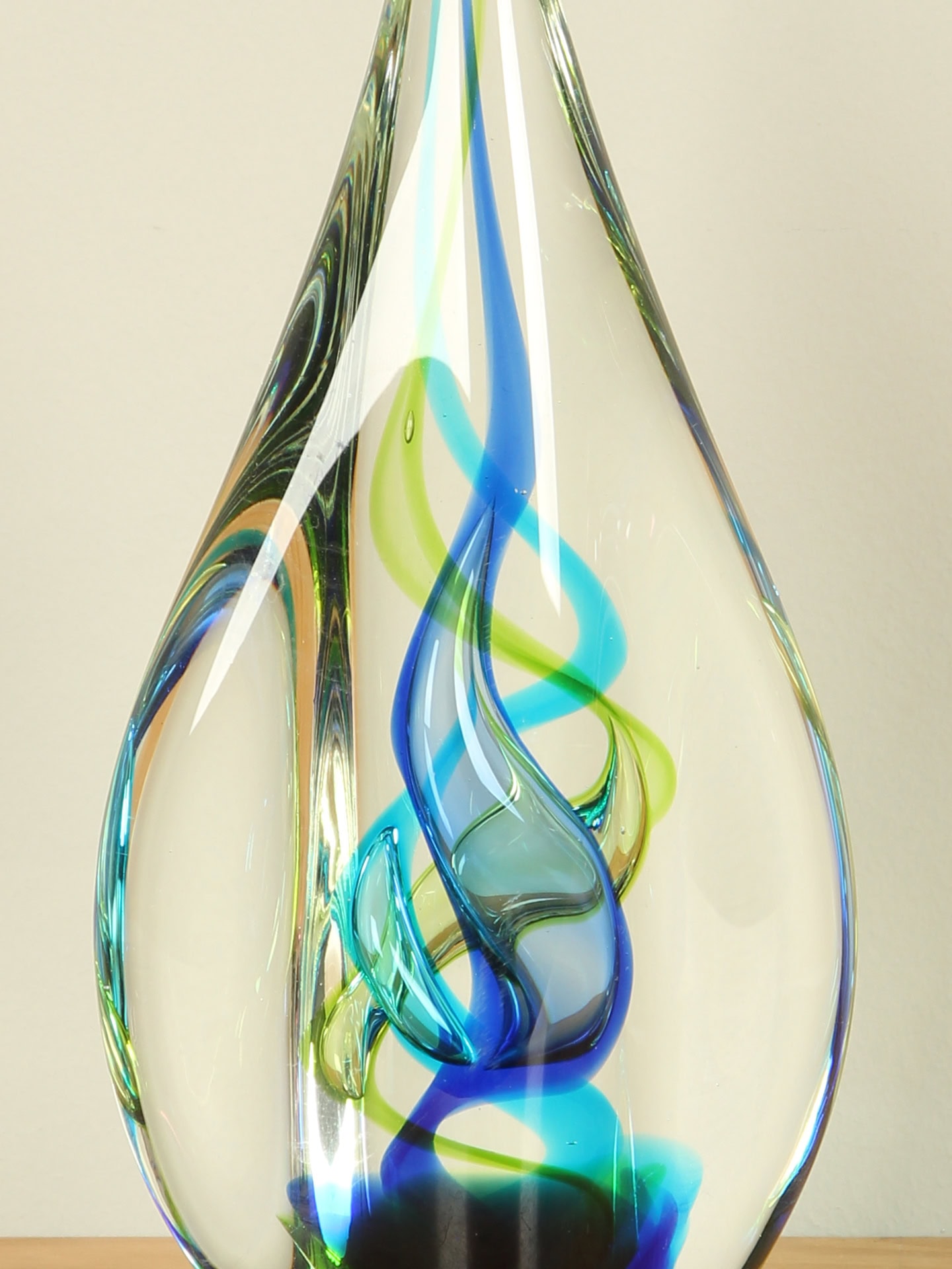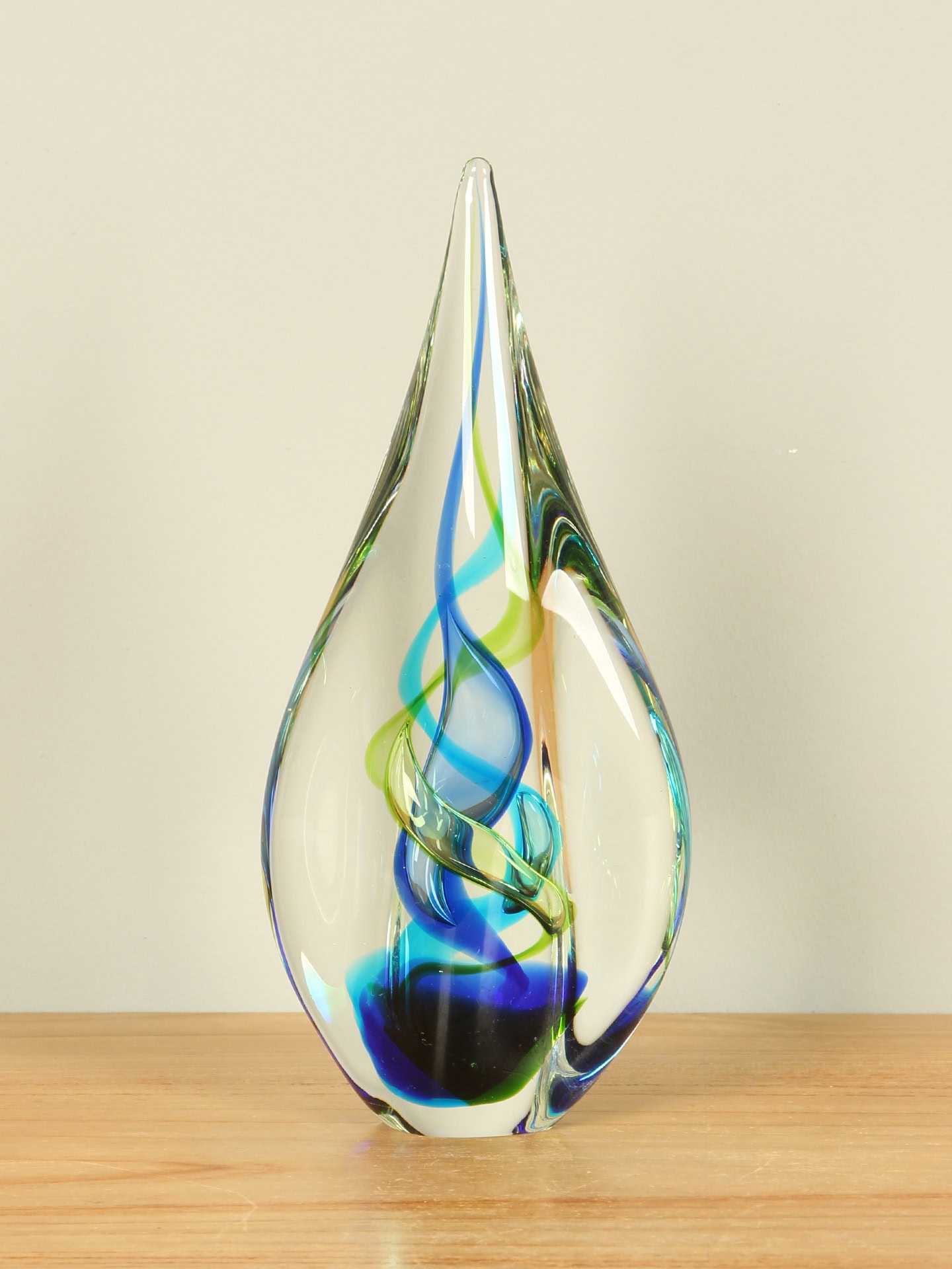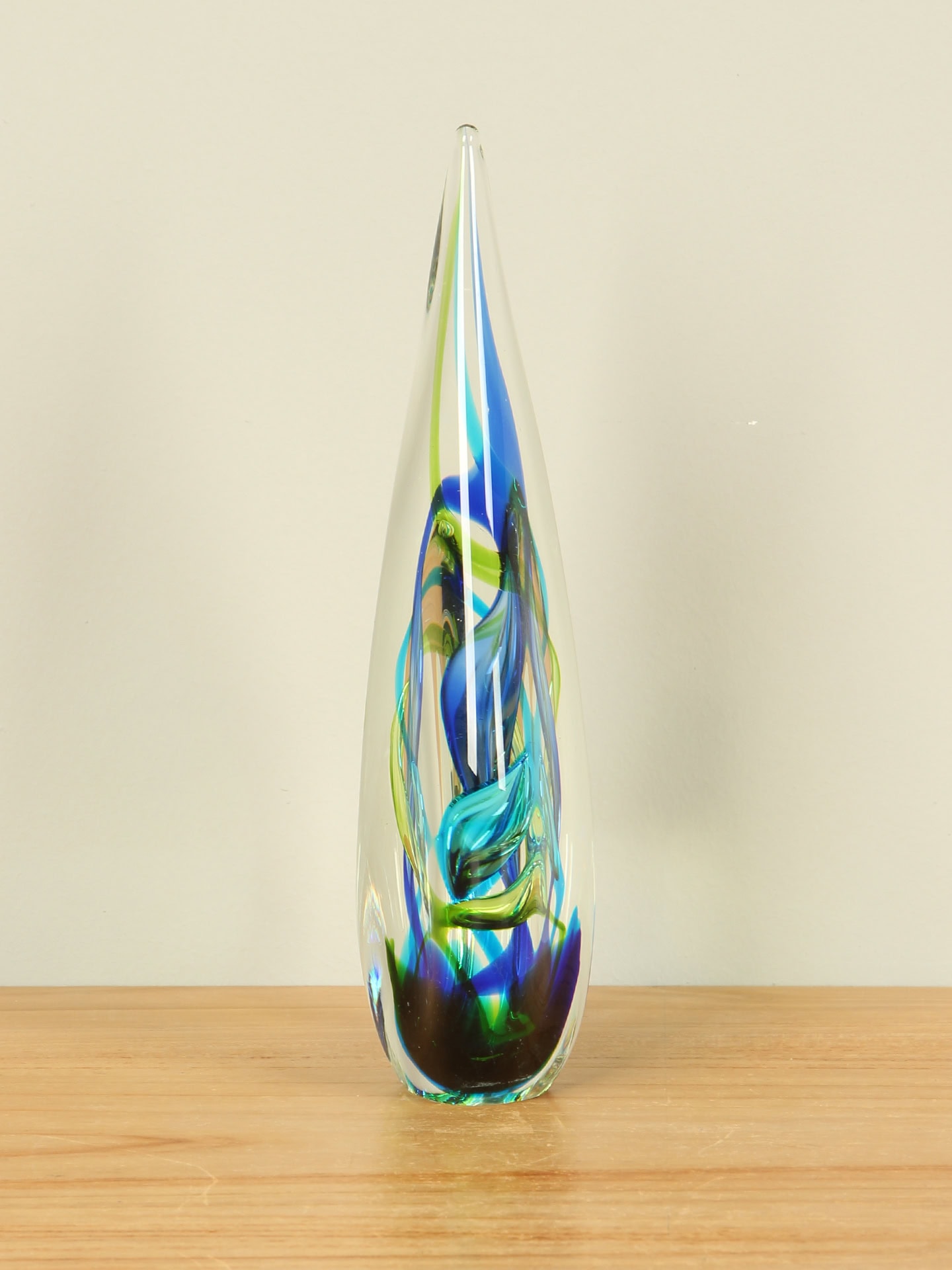 Druppel – Blauw – Glas – Blauw/groene druppel met gedraaide kern, 24 cm – 24x11x5 cm
