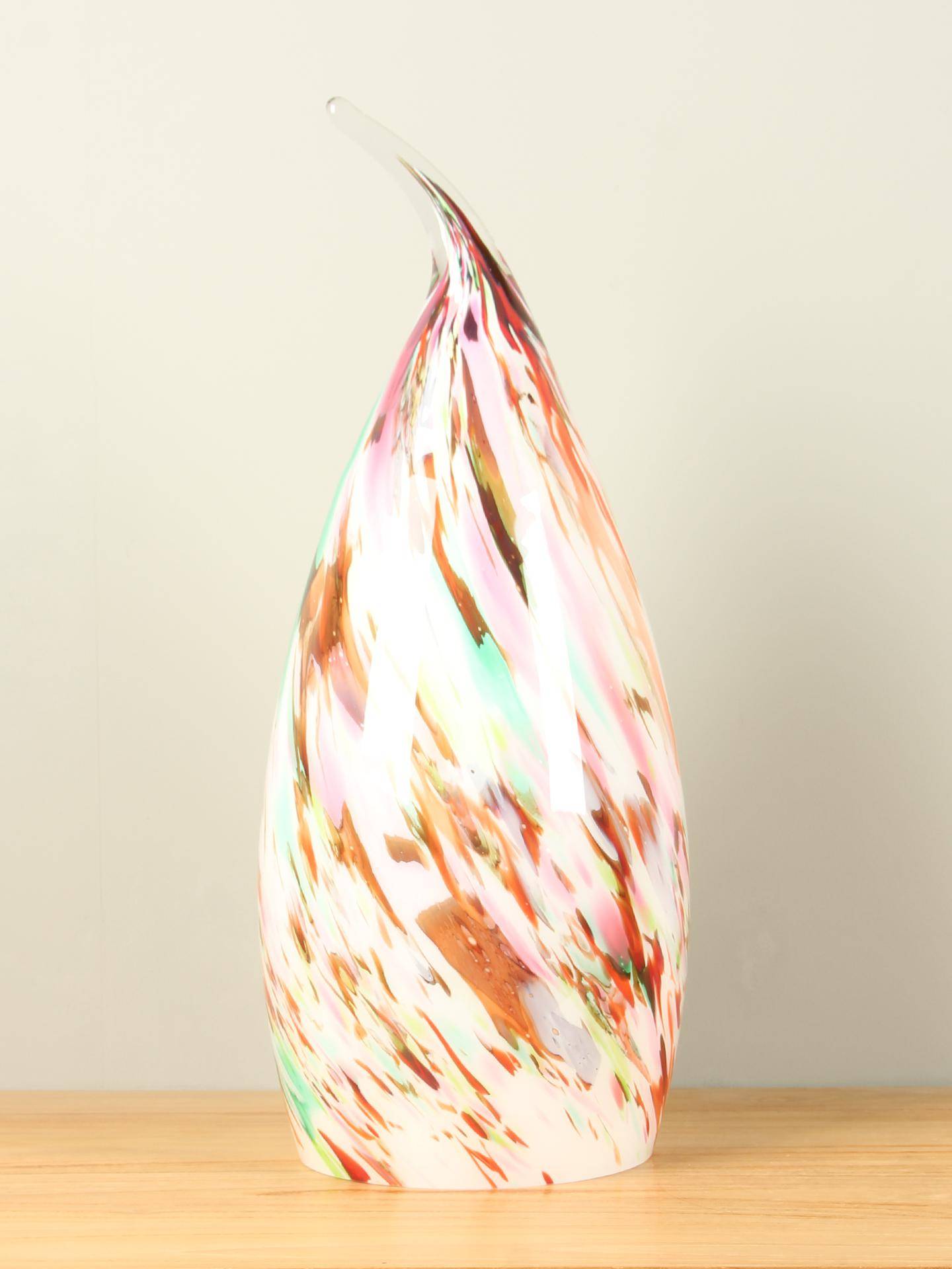 Deze glaslamp is met de hand gevormd, waardoor elk exemplaar zijn eigen verhaal vertelt. Tijdens het glasblazen mengen kleuren zich als vanzelf tot zachte overgangen, levendige accenten of juist subtiele details. Het resultaat is een lamp die niet alleen licht geeft, maar ook een warm kunstobject vormt dat uw interieur een bijzondere sfeer meegeeft. Geen twee lampen zijn ooit precies gelijk — en dat maakt uw exemplaar uniek.