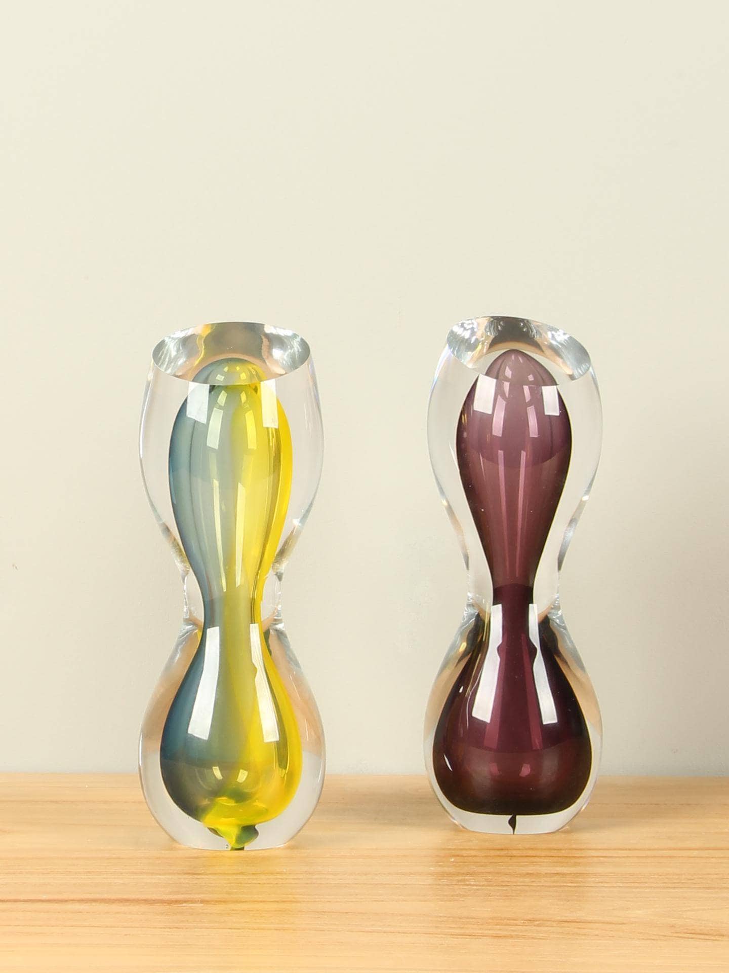 Dit unieke stuk glaskunst is ontstaan uit een ambachtelijk proces waarin het glas, kleur en beweging samenkomen. Terwijl de glasblazer werkt, vloeien tinten in elkaar over, trekken lijnen hun eigen spoor en vormt het glas zich tot een one-of-a-kind sculptuur. Geen machine kan deze nuances reproduceerbaar maken — dit object draagt de handtekening van het maakproces en daarmee zijn eigen ziel.