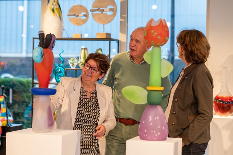 Een bijzonder stuk glaskunst dat uw tuin een kleurrijke, unieke uitstraling geeft — handgemaakt, duurzaam en met zorg vervaardigd.