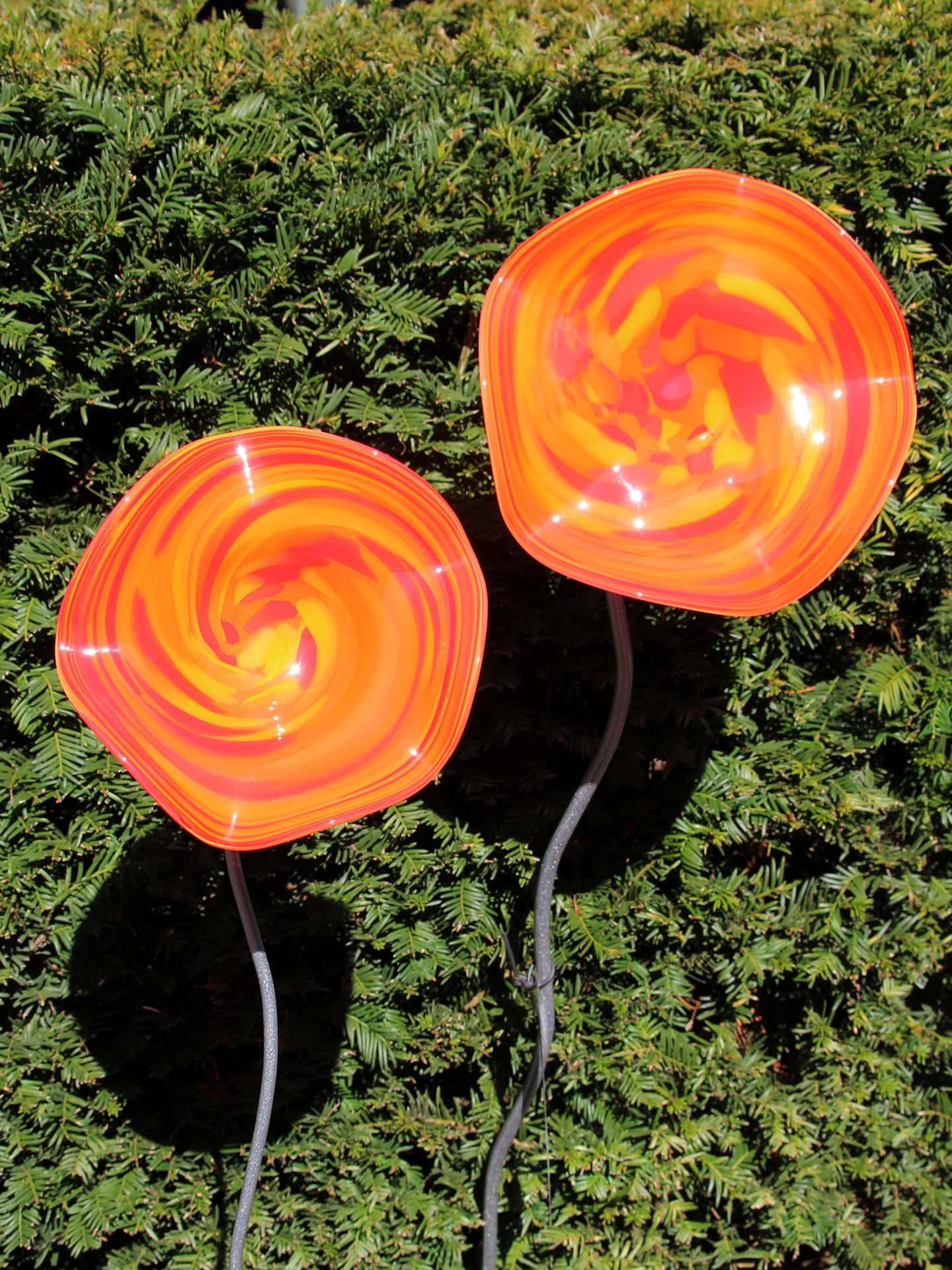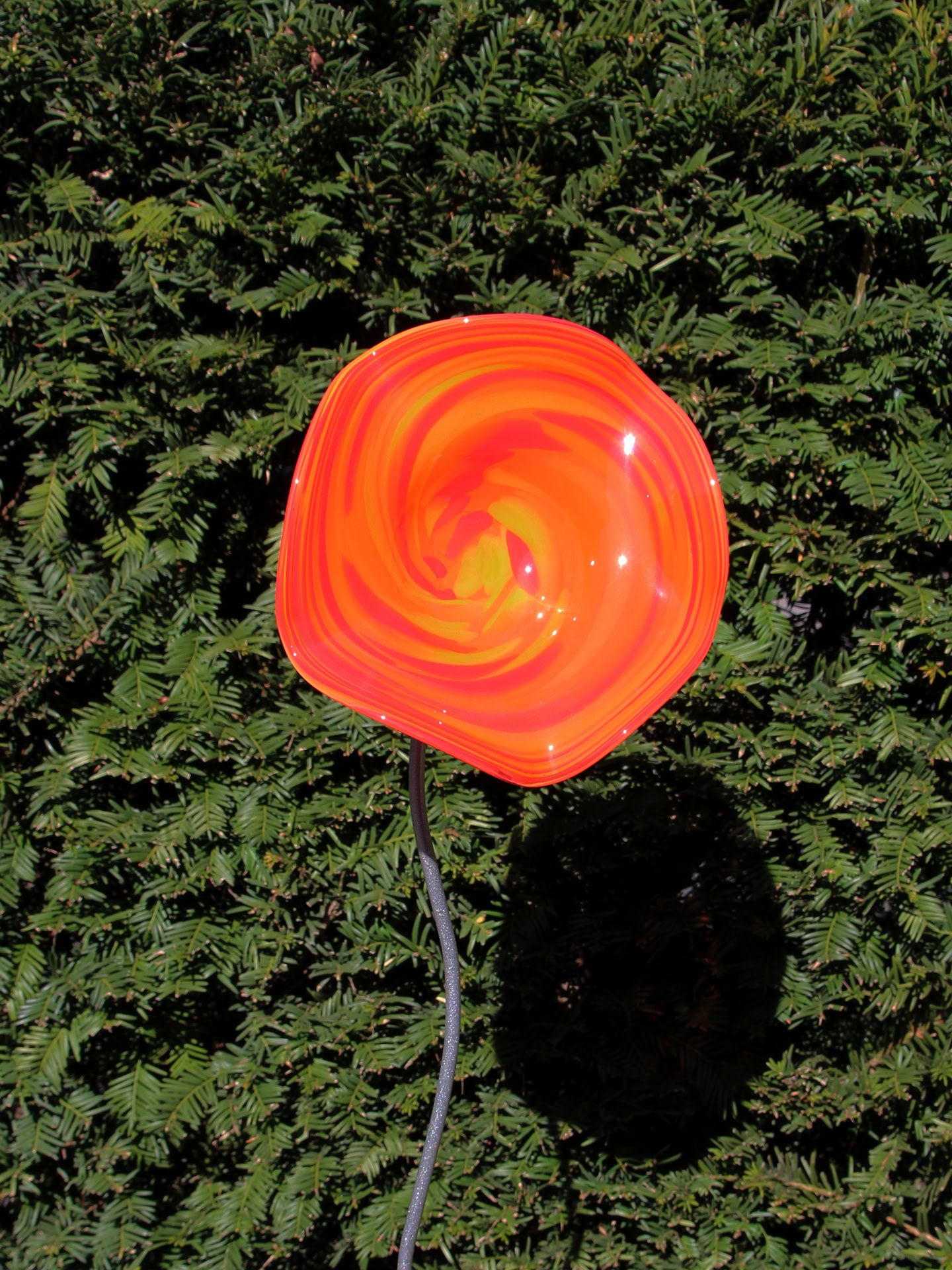 Een bijzonder stuk glaskunst dat uw tuin een kleurrijke, unieke uitstraling geeft — handgemaakt, duurzaam en met zorg vervaardigd.