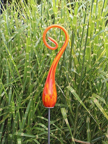 Een bijzonder stuk glaskunst dat uw tuin een kleurrijke, unieke uitstraling geeft — handgemaakt, duurzaam en met zorg vervaardigd.