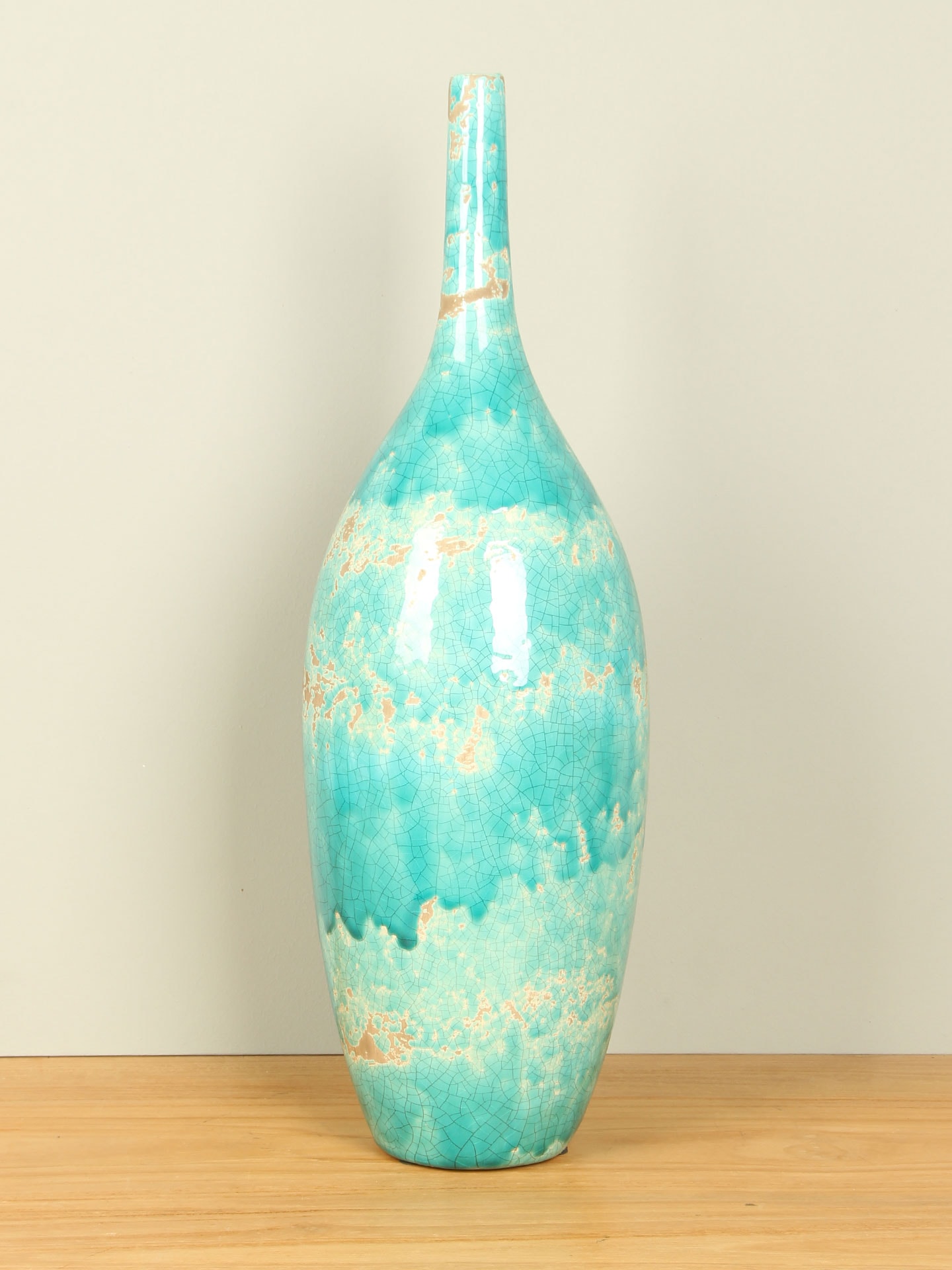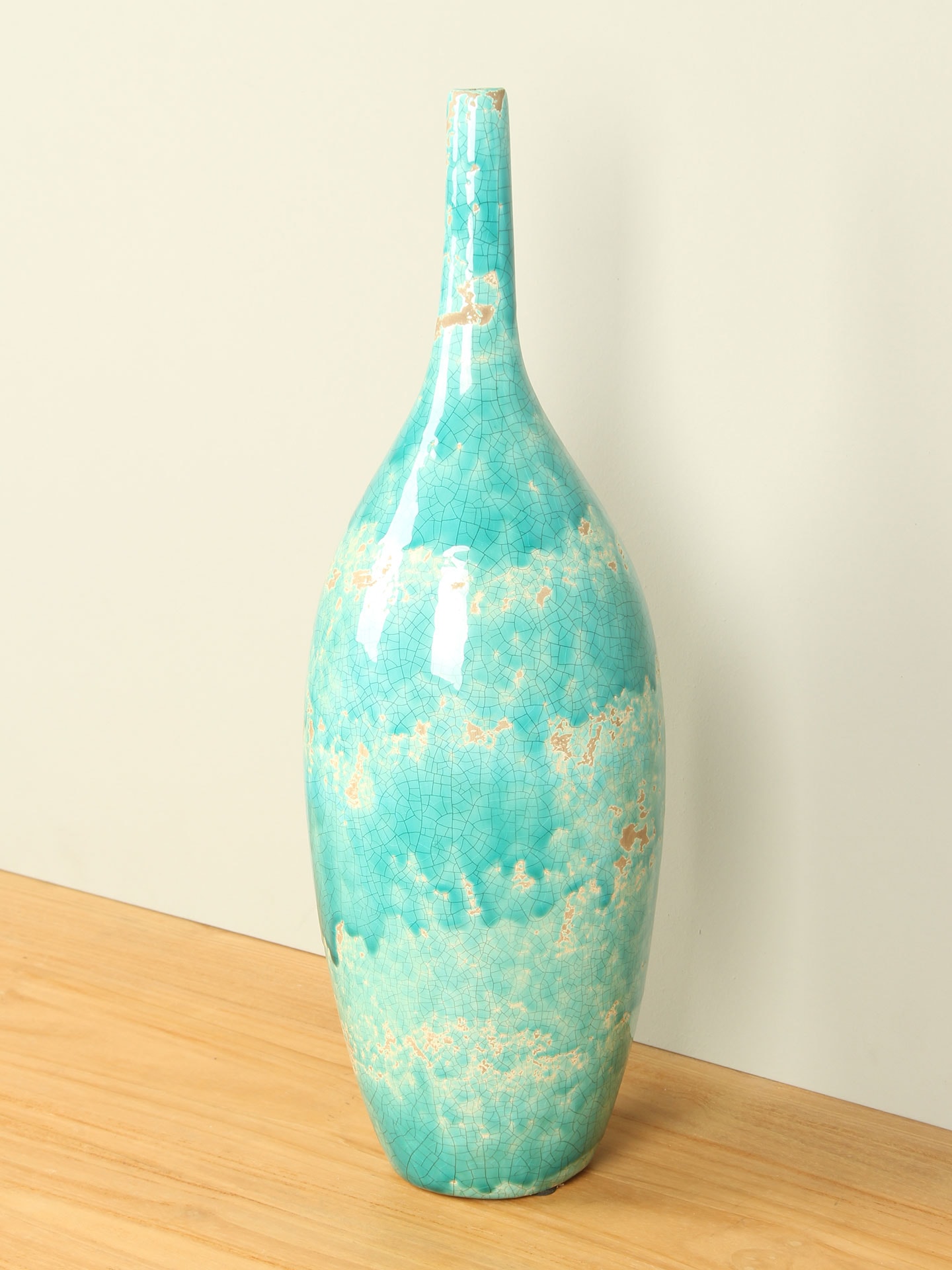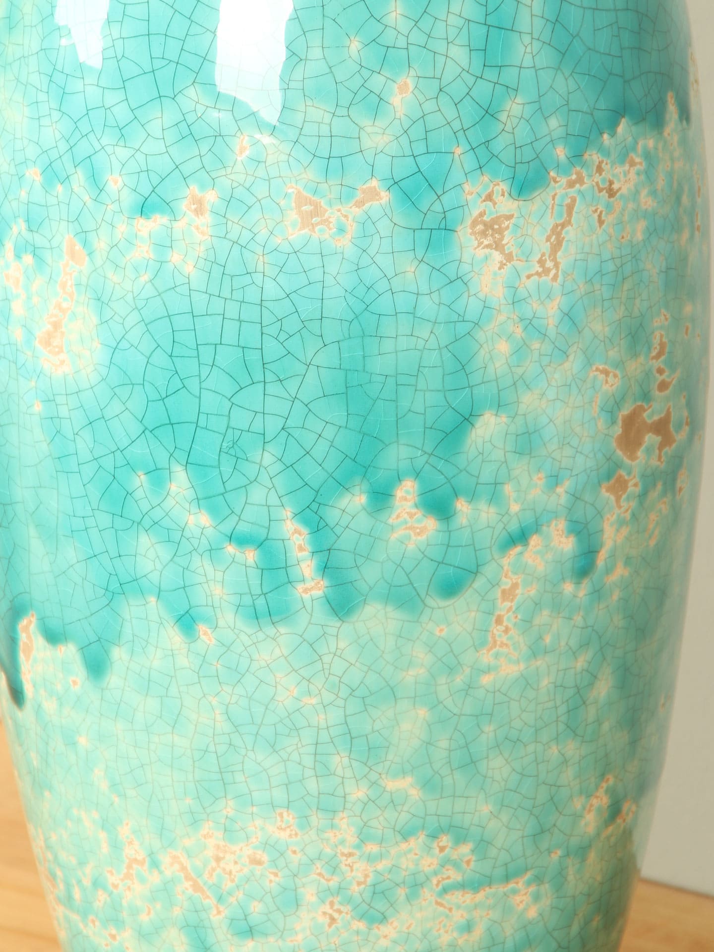 De keramieken vaas Actros is een elegante decoratieve vaas die direct de aandacht trekt door zijn bijzondere kleur en afwerking. De frisse turquoise tint wordt gecombineerd met een subtiele craquelé-structuur en lichte accenten, waardoor de vaas een levendige en karaktervolle uitstraling krijgt. Geen enkele vaas is daardoor precies hetzelfde.