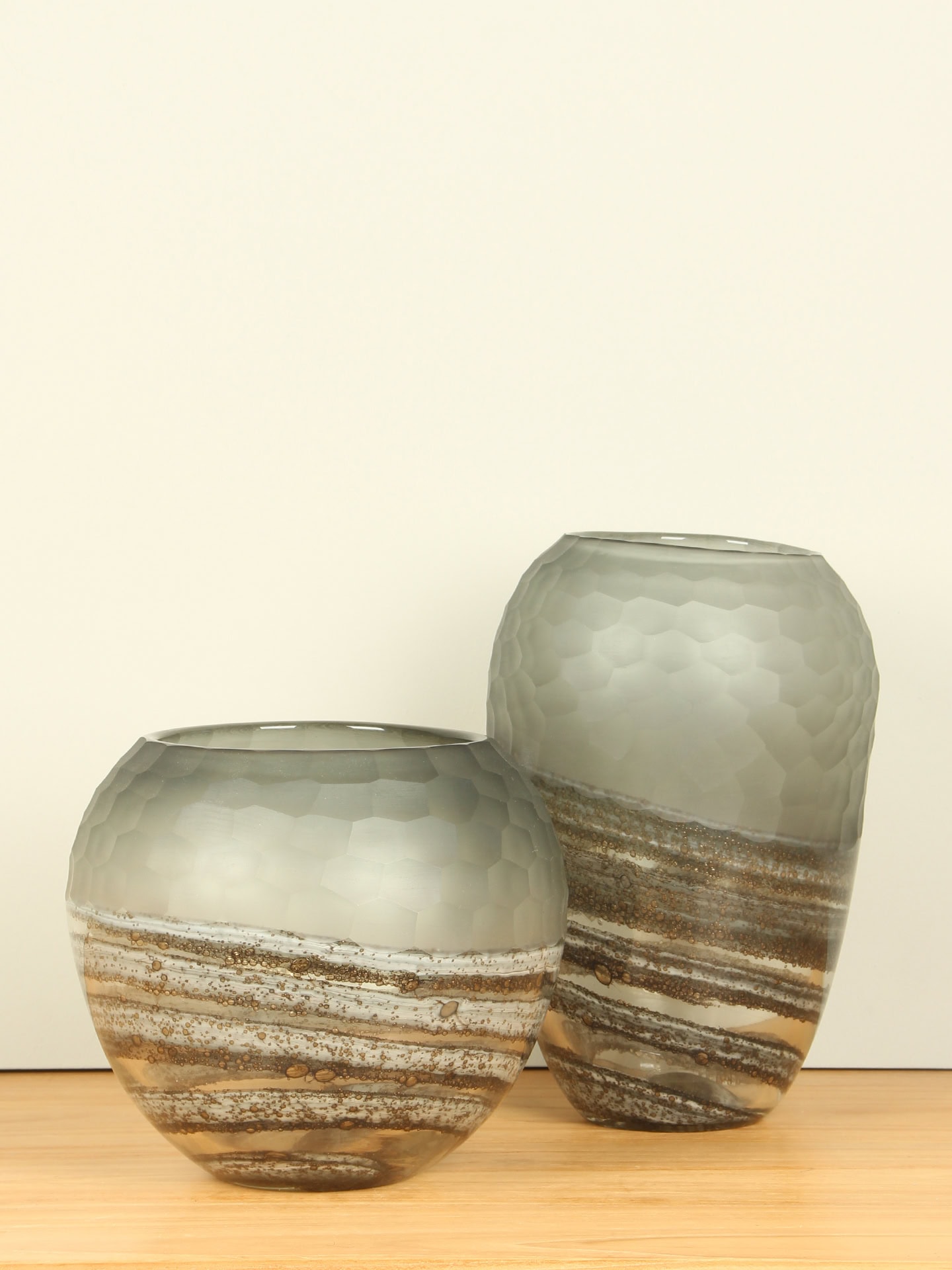 Deze vaas staat prachtig op een dressoir, bijzettafel of vensterbank, waar het glas het licht mooi vangt. Wilt u haar nóg meer laten spreken, dan is een passende sokkel een stijlvolle toevoeging die het lijnenspel en de kleuren extra benadrukt.
