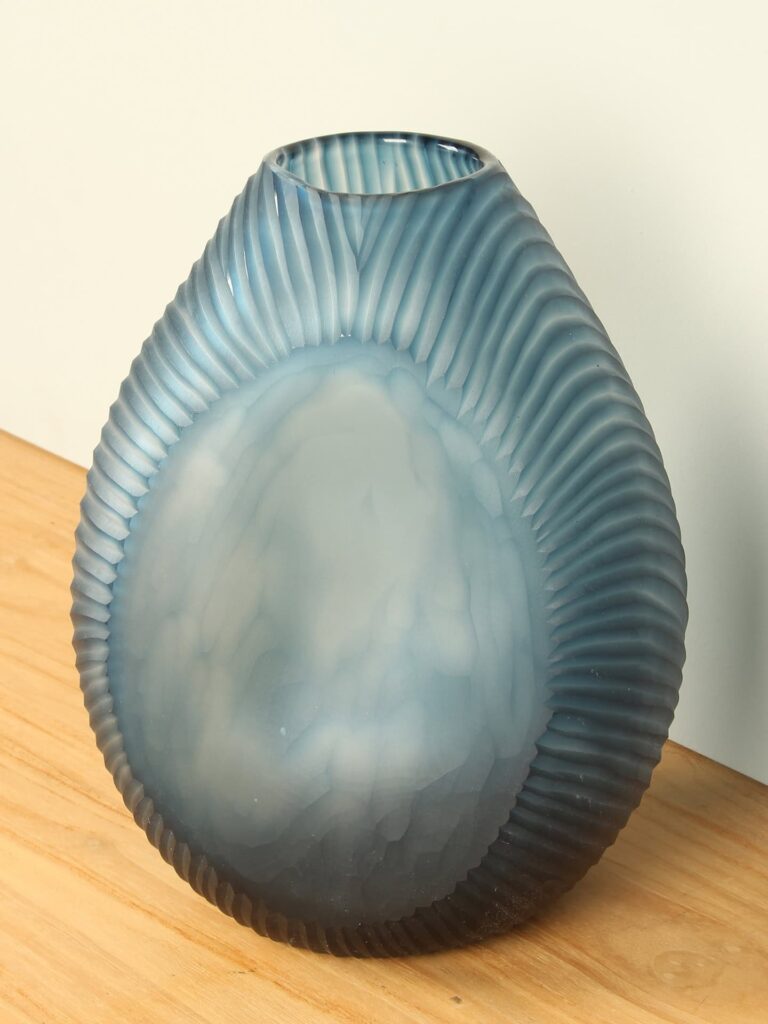 Vaas – Mat blauw – Glas – Glasvaas – 31x25x25 cm
