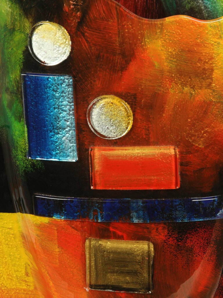 Deze vaas staat prachtig op een dressoir, bijzettafel of vensterbank, waar het glas het licht mooi vangt. Wilt u haar nóg meer laten spreken, dan is een passende sokkel een stijlvolle toevoeging die het lijnenspel en de kleuren extra benadrukt.