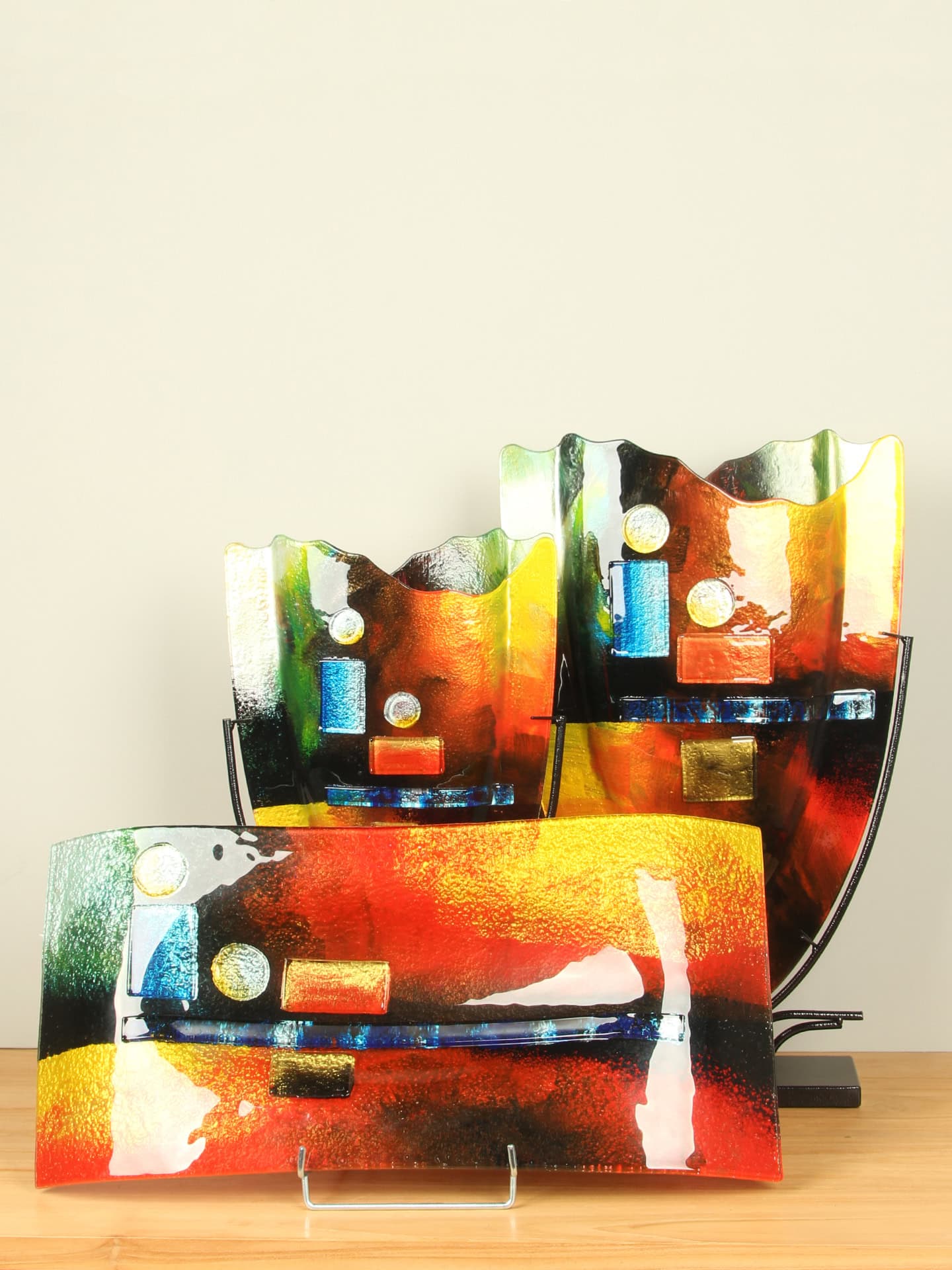 Vaas – Multicolor – Glas – Desert op standaard – 49x30x10 cm