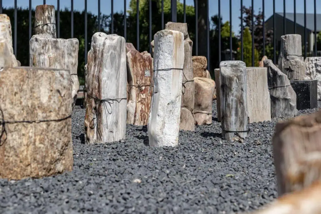 Elk stuk versteend hout in onze collectie is een uniek natuurproduct. Daarom zijn alle exemplaren afzonderlijk gefotografeerd en te bekijken. Naast de online presentatie is onze volledige collectie te bewonderen in de showroom en showtuin, waar je de structuur, het gewicht en de uitstraling van het materiaal écht kunt ervaren.